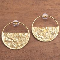 Circular Modern Gold-Plated Brass Drop Earrings from Bali 'Surface Waves' Item ID: 2671737711