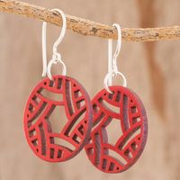 Circular Recycled Wood Dangle Earrings in Red from Guatemala 'Circular Imagination' Item ID: 2669933587