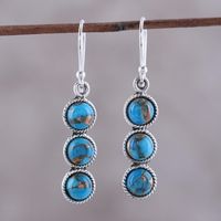 Circular Sterling Silver and Composite Turquoise Earrings 'Dancing Circles' Item ID: 2671792143