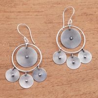 Circular Sterling Silver Chandelier Earrings from Bali 'Mesmerizing Discs' Item ID: 2671472283