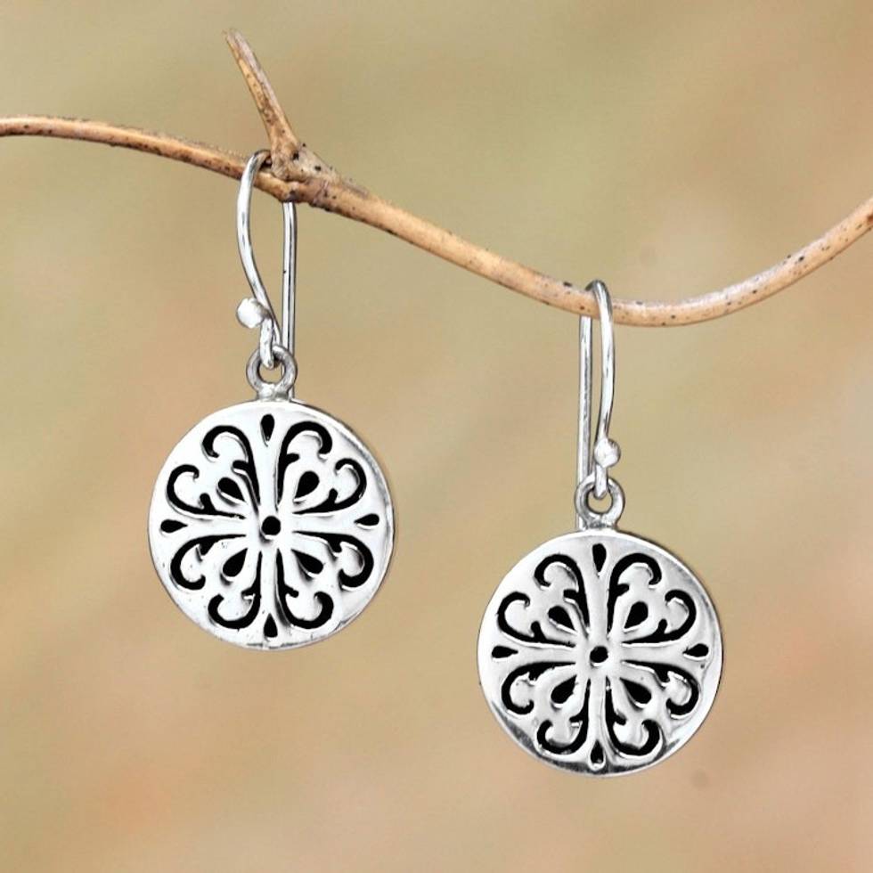 Circular Sterling Silver Dangle Earrings from Bali 'Lovely Medallions' Item ID: 2671736534
