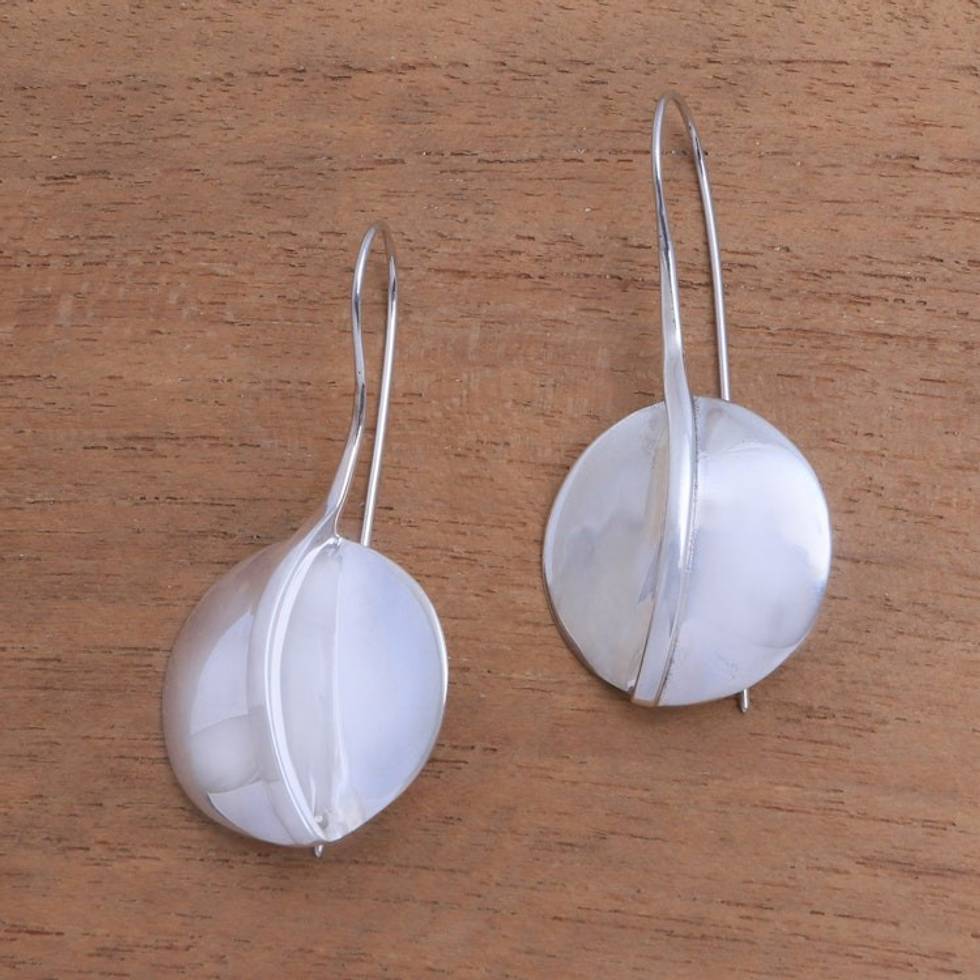 Circular Sterling Silver Drop Earrings from Bali 'Arched Circles' Item ID: 2671736355