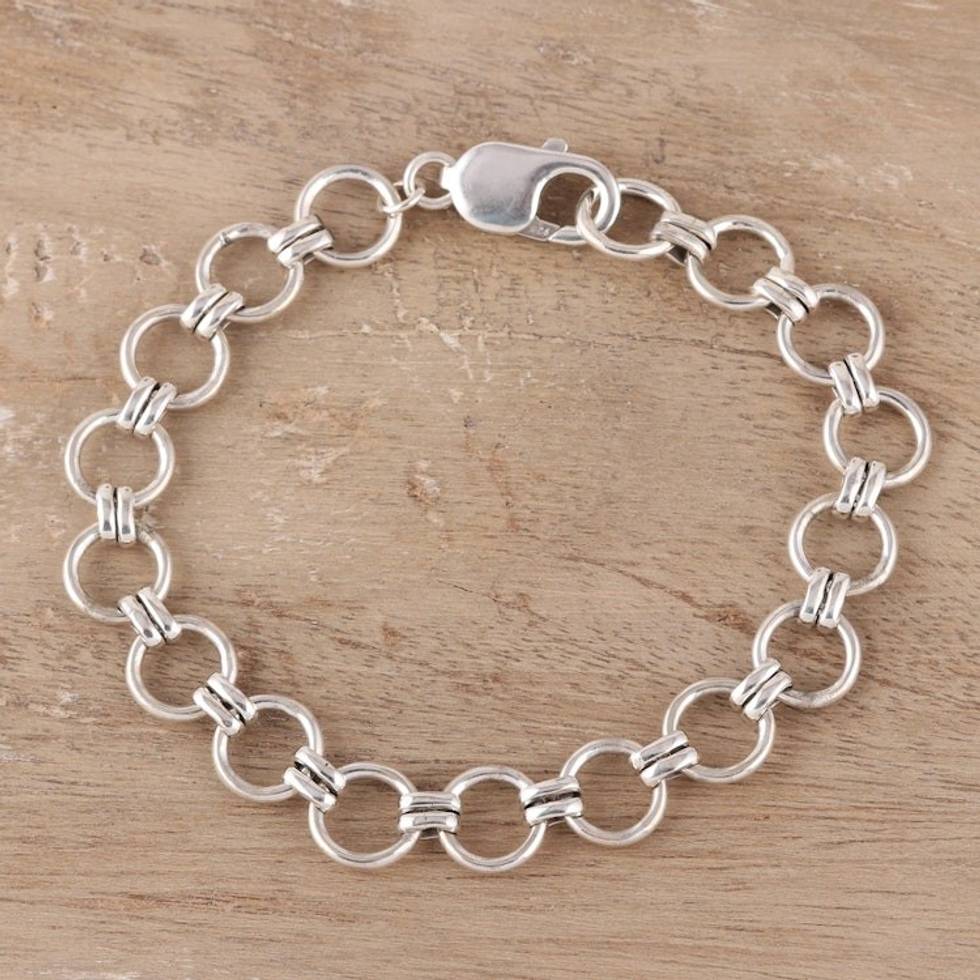 Circular Sterling Silver Link Bracelet from India 'Contemporary Circles' Item ID: 2671792361