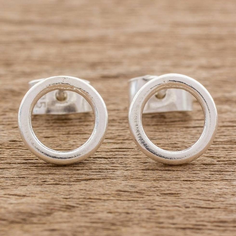 Circular Sterling Silver Stud Earrings from Guatemala 'Rings of Harmony' Item ID: 2671779243