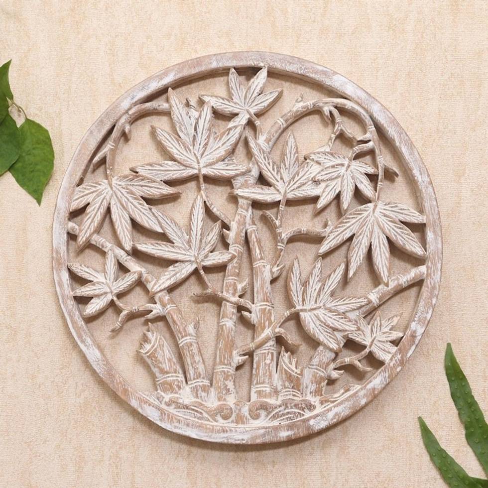 Circular Suar Wood Relief Panel 'Rounded Bamboo' Item ID: 2671746249