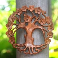 Circular Tree-Themed Suar Wood Relief Panel from Bali 'Tree of Beauty' Item ID: 2671820746