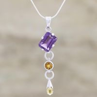Citrine and amethyst pendant necklace 'Honey Drop' Item ID: 2671794225