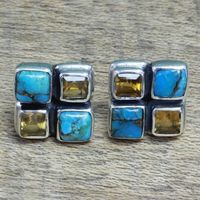 Citrine and Blue Composite Turquoise Button Earrings 'Harmonious Sky' Item ID: 2671793173