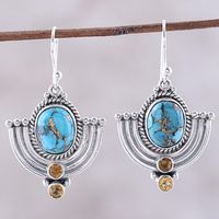 Citrine and Blue Composite Turquoise Dangle Earrings 'Blue Flame' Item ID: 2671618668