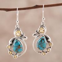 Citrine and Composite Turquoise Dangle Earrings from India 'Exquisite' Item ID: 2671792991