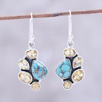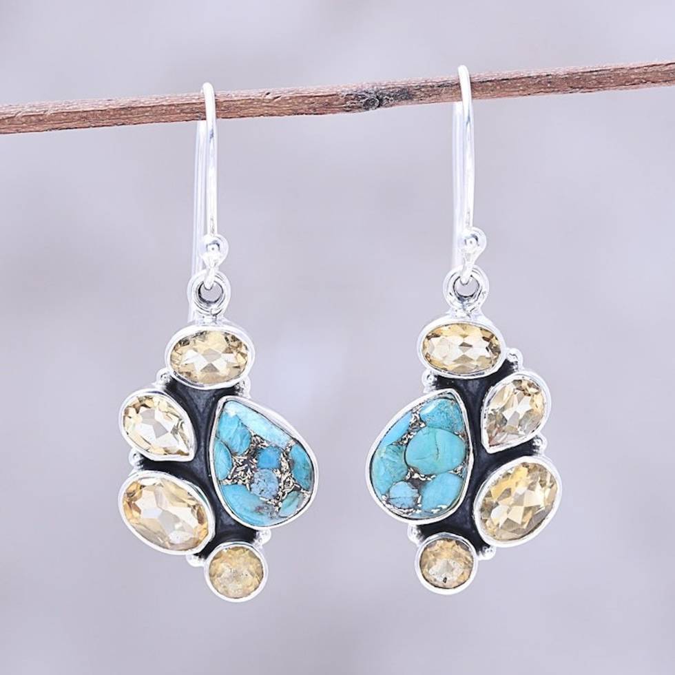 Citrine and Composite Turquoise Dangle Earrings from India 'Golden Fusion' Item ID: 2671792958