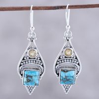 Citrine and Composite Turquoise Dangle Earrings from India 'Mythic Ocean' Item ID: 2671792341