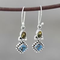 Citrine and Composite Turquoise Dangle Earrings from India 'Sunny Delight' Item ID: 2671789626
