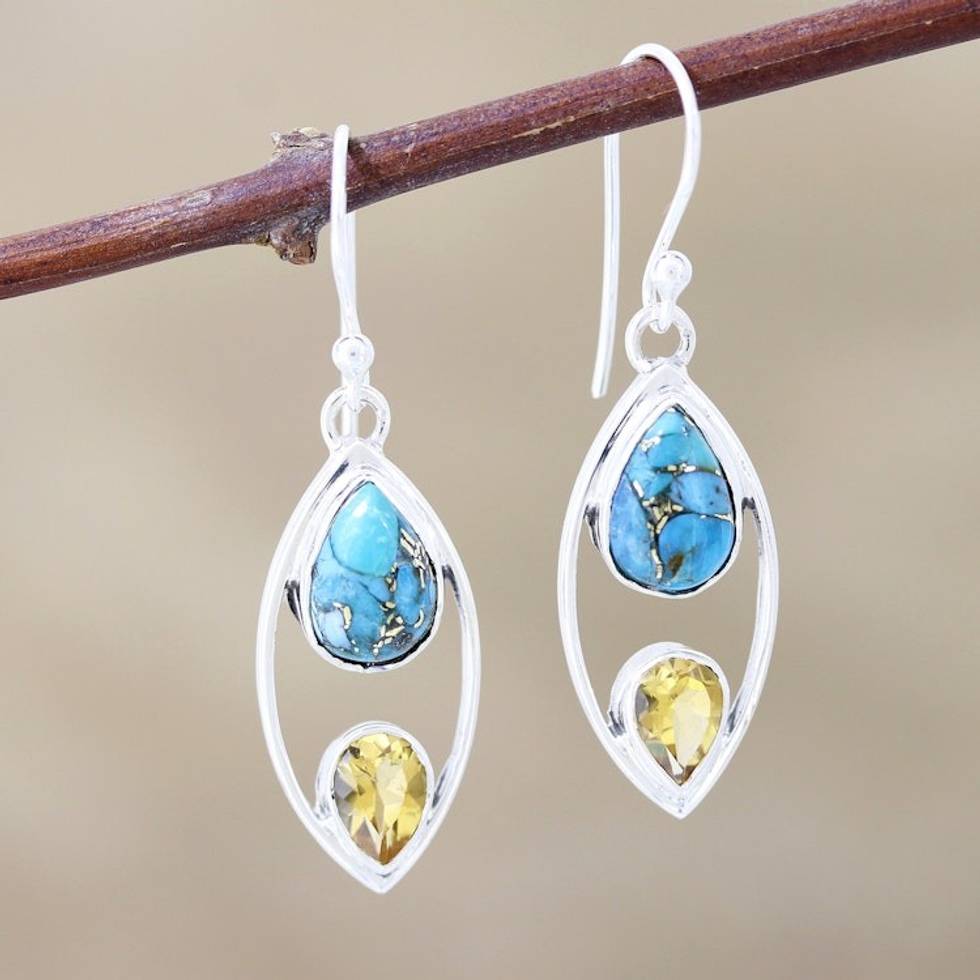 Citrine and Composite Turquoise Dangle Earrings 'Happy Union' Item ID: 2671789368