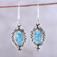 Citrine and Composite Turquoise Earrings from India 'Ocean in Sunlight' Item ID: 2671792043