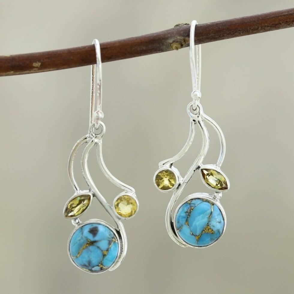 Citrine and Composite Turquoise Earrings 'Triple Fascination' Item ID: 2671789528