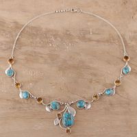 Citrine and Composite Turquoise Link Pendant Necklace 'Dew Blossom' Item ID: 2671792038