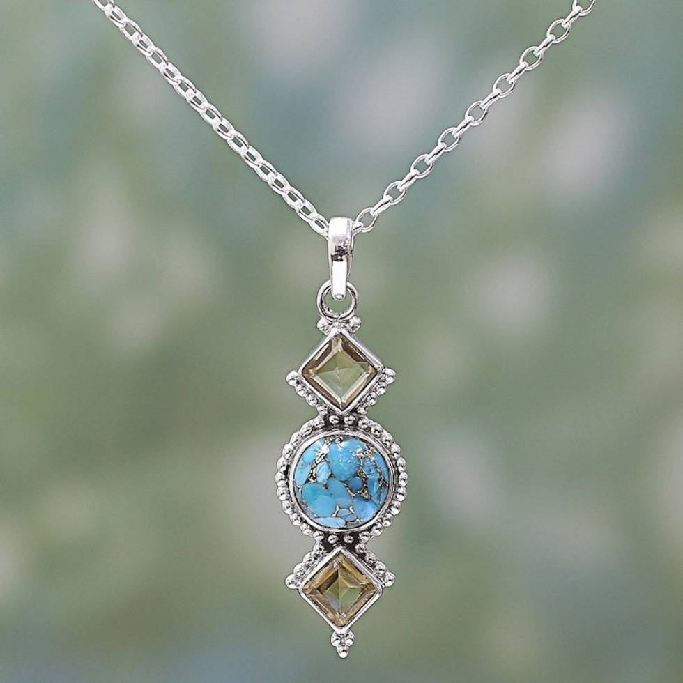 Citrine and Composite Turquoise Pendant Necklace from India 'Captivating Sky' Item ID: 2671793042