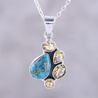 Citrine and Composite Turquoise Pendant Necklace from India 'Golden Fusion' Item ID: 2671792877
