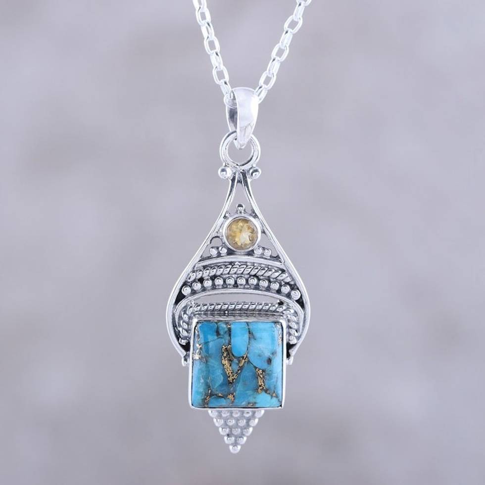 Citrine and Composite Turquoise Pendant Necklace from India 'Mythic Ocean' Item ID: 2671792006
