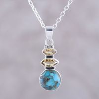 Citrine and Composite Turquoise Pendant Necklace from India 'Peaceful Dazzle' Item ID: 2671792646