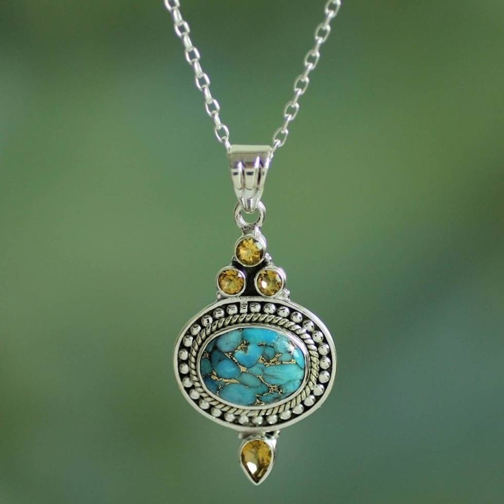 Citrine and Composite Turquoise Pendant Necklace 'Luminous Blue Sky' Item ID: 2671793415