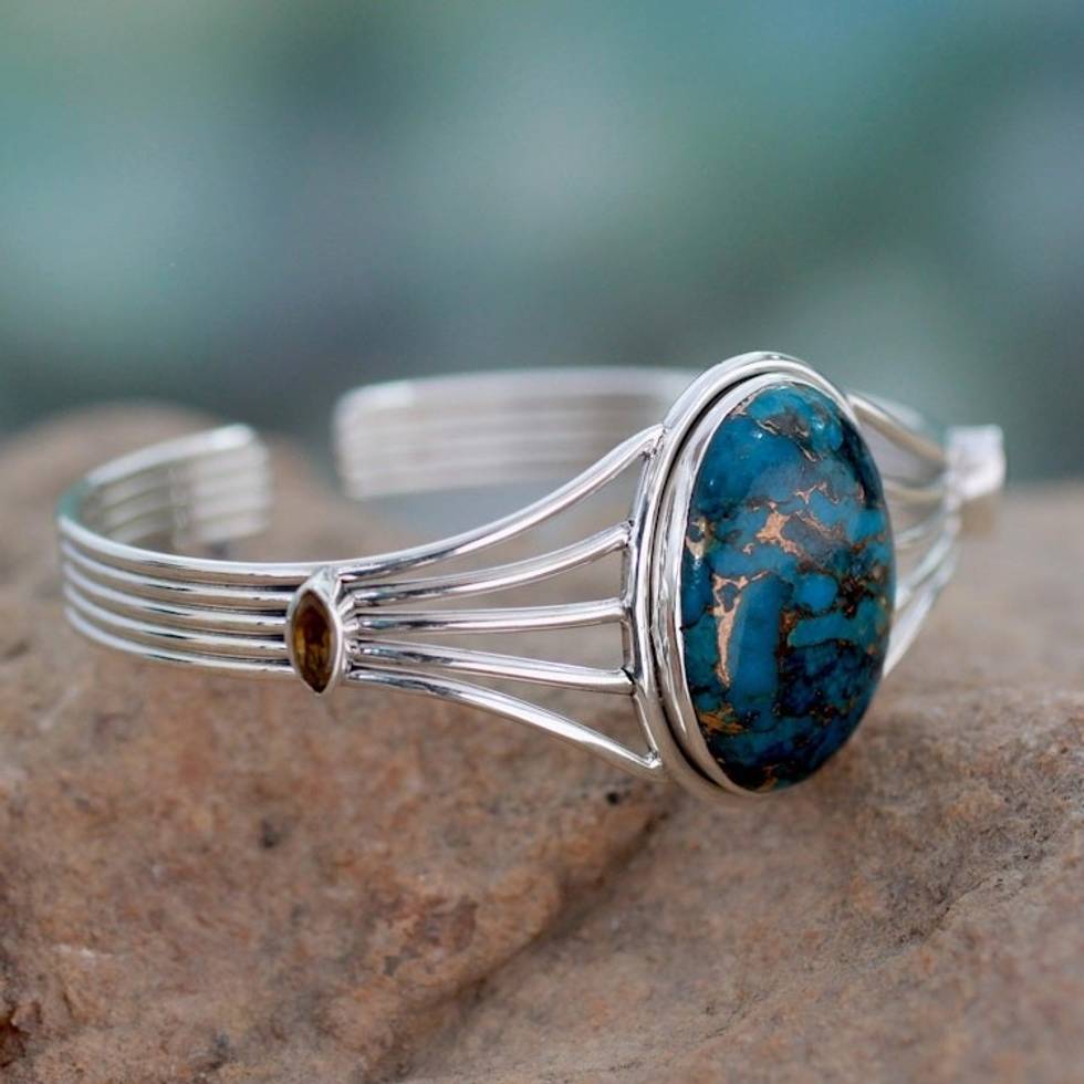 Citrine and Composite Turquoise Silver Cuff Bracelet 'Blue Island' Item ID: 2671793305
