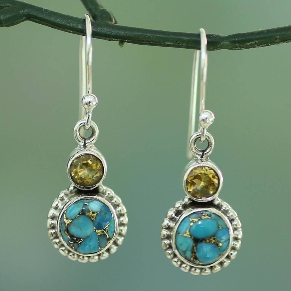 Citrine and Composite Turquoise Sterling Silver Earrings 'Earth and Sun' Item ID: 2671620399