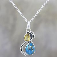 Citrine and Composite Turquoise Teardrop Pendant Necklace 'Two Teardrops' Item ID: 2671789645