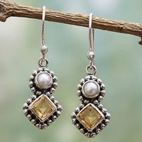 Citrine and Cultured Pearl Dangle Earrings in Silver 925 'Kolkata Sparkle' Item ID: 2671793707