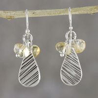 Citrine and Karen Silver Dangle Earrings from Thailand 'Lucky Texture' Item ID: 2671798595