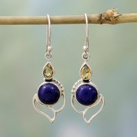 Citrine and Lapis Lazuli Dangle Earrings from India 'Starry Crest' Item ID: 2671793920