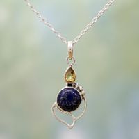 Citrine and Lapis Lazuli Pendant Necklace from India 'Starry Crest' Item ID: 2671793460