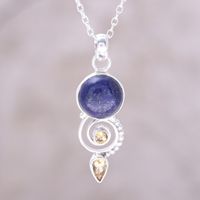 Citrine and Lapis Lazuli Spiral Necklace from India 'Majestic Spiral' Item ID: 2669956061