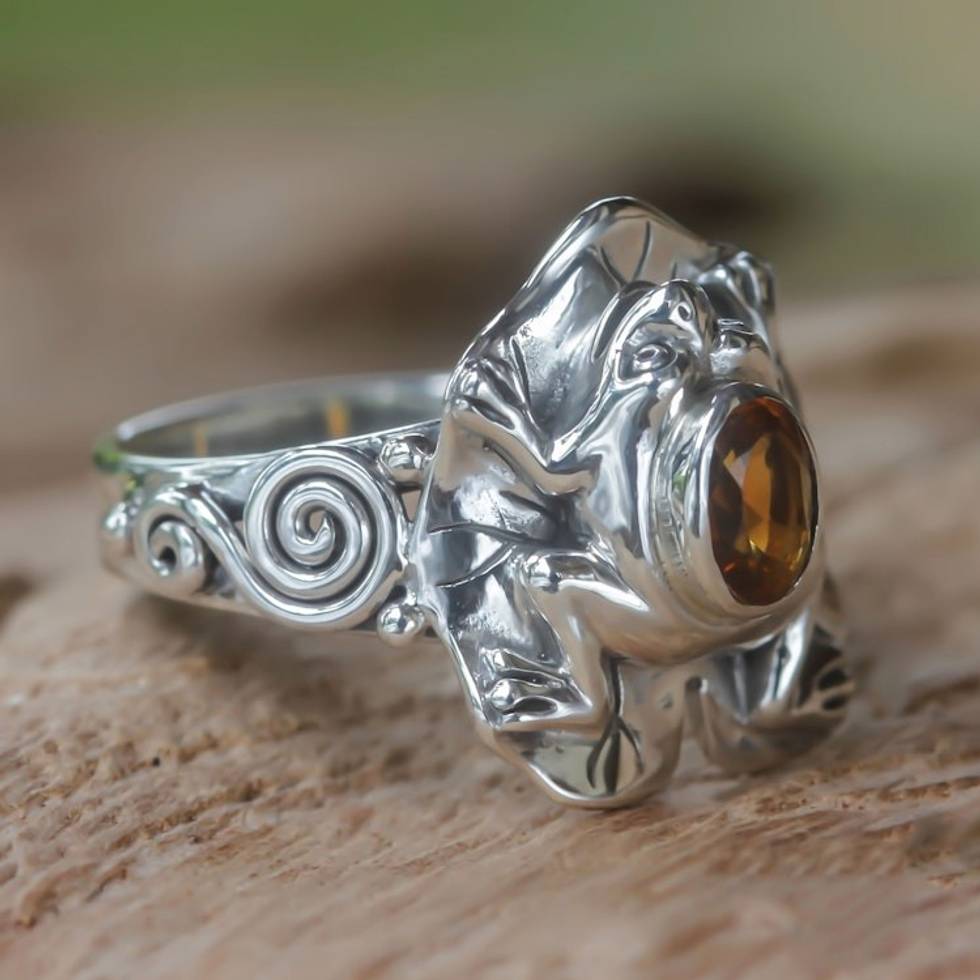 Citrine and Silver Frog Cocktail Ring 'Golden Rainforest Frog' Item ID: 2671702091