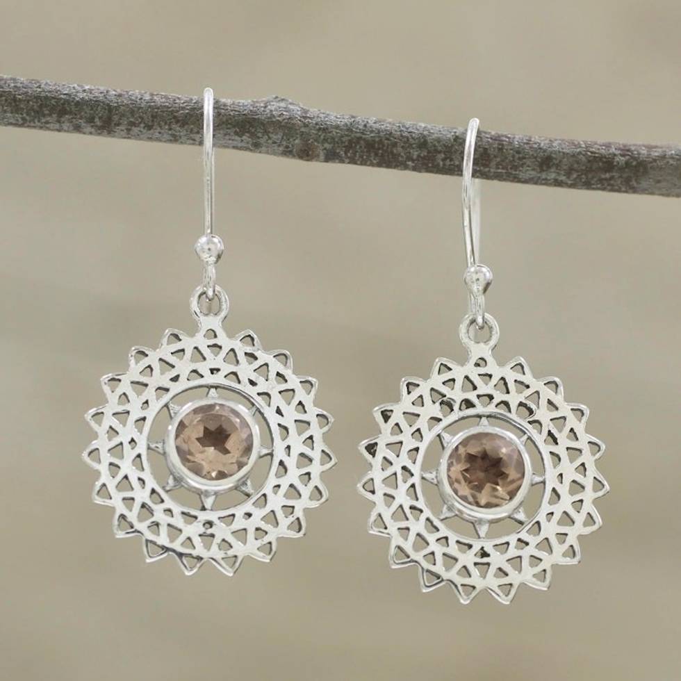 Citrine and Silver Triangle Motif Dangle Earrings from India 'Triangular Sun Rays' Item ID: 2671791109