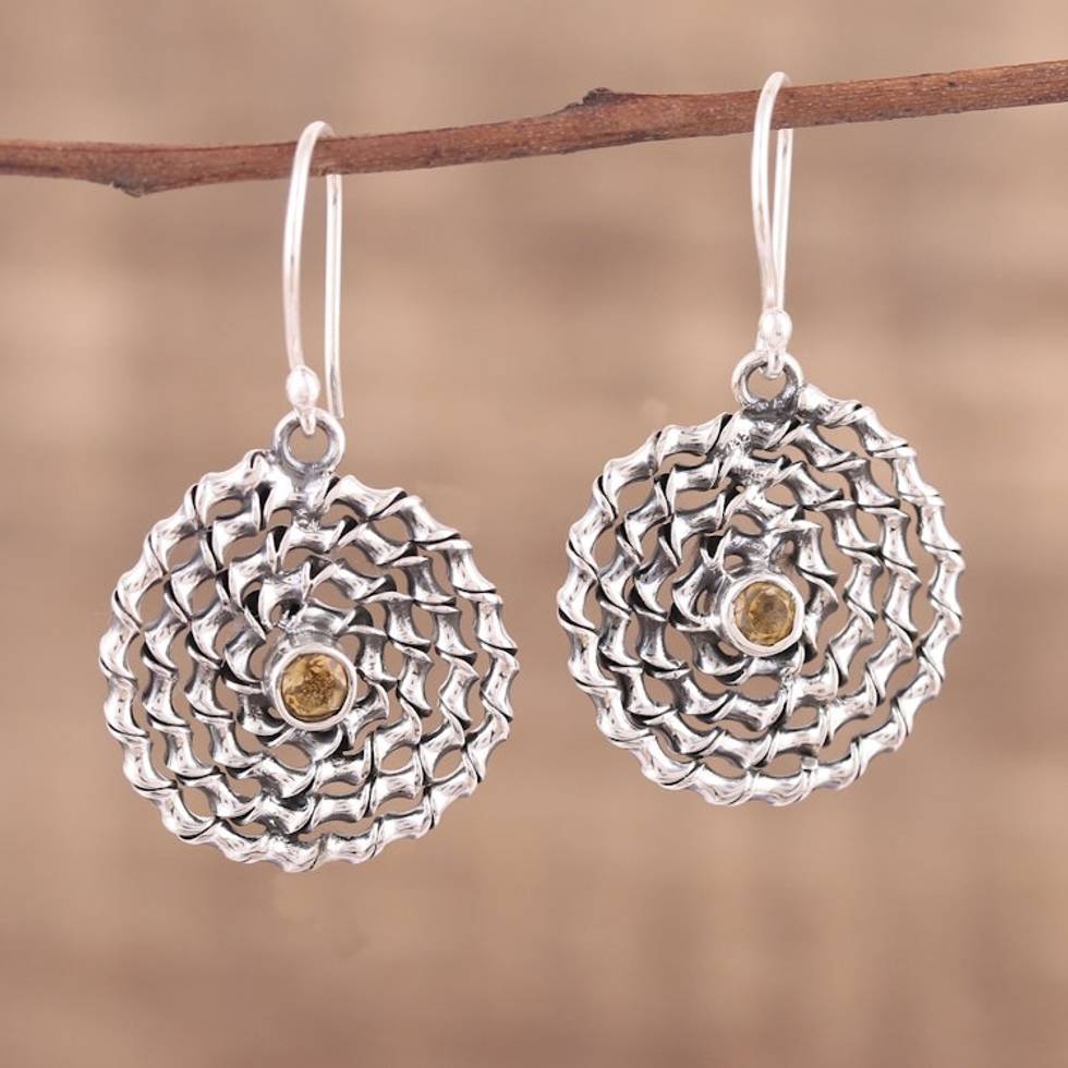 Citrine and Sterling Silver Dangle Spiral Earrings 'Honey Spiral' Item ID: 2671791684