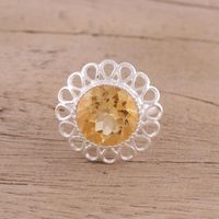 Citrine and Sterling Silver Floral Cocktail Ring from India 'Golden Floret' Item ID: 2671790767