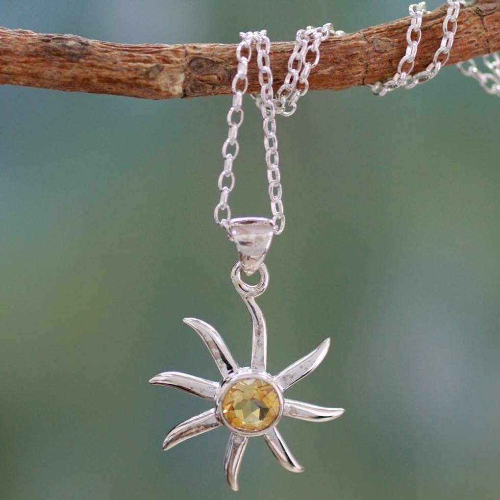 Citrine and Sterling Silver Necklace from India Jewelry 'Golden Sun' Item ID: 2669923987
