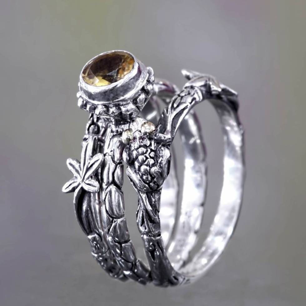 Citrine and Sterling Silver Stacking Rings set of 3 'Tree Frog' Item ID: 2671702582