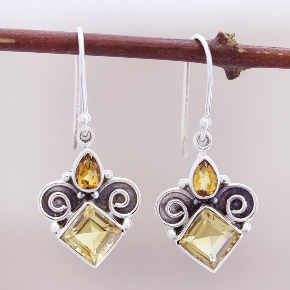 Citrine Dangle Earrings Handmade in India 'Paramount' Item ID: 2671623822