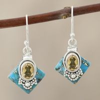 Citrine Dangle Earrings in Sterling Silver 'Kolkata Gold' Item ID: 2671789647