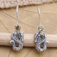 Citrine Dragon-Motif Dangle Earrings 'Yellow Dragon' Item ID: 2671745844