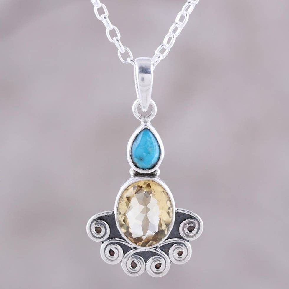 Citrine Oval and Sterling Silver Scrollwork Pendant Necklace 'Sun Salutations' Item ID: 2669925471