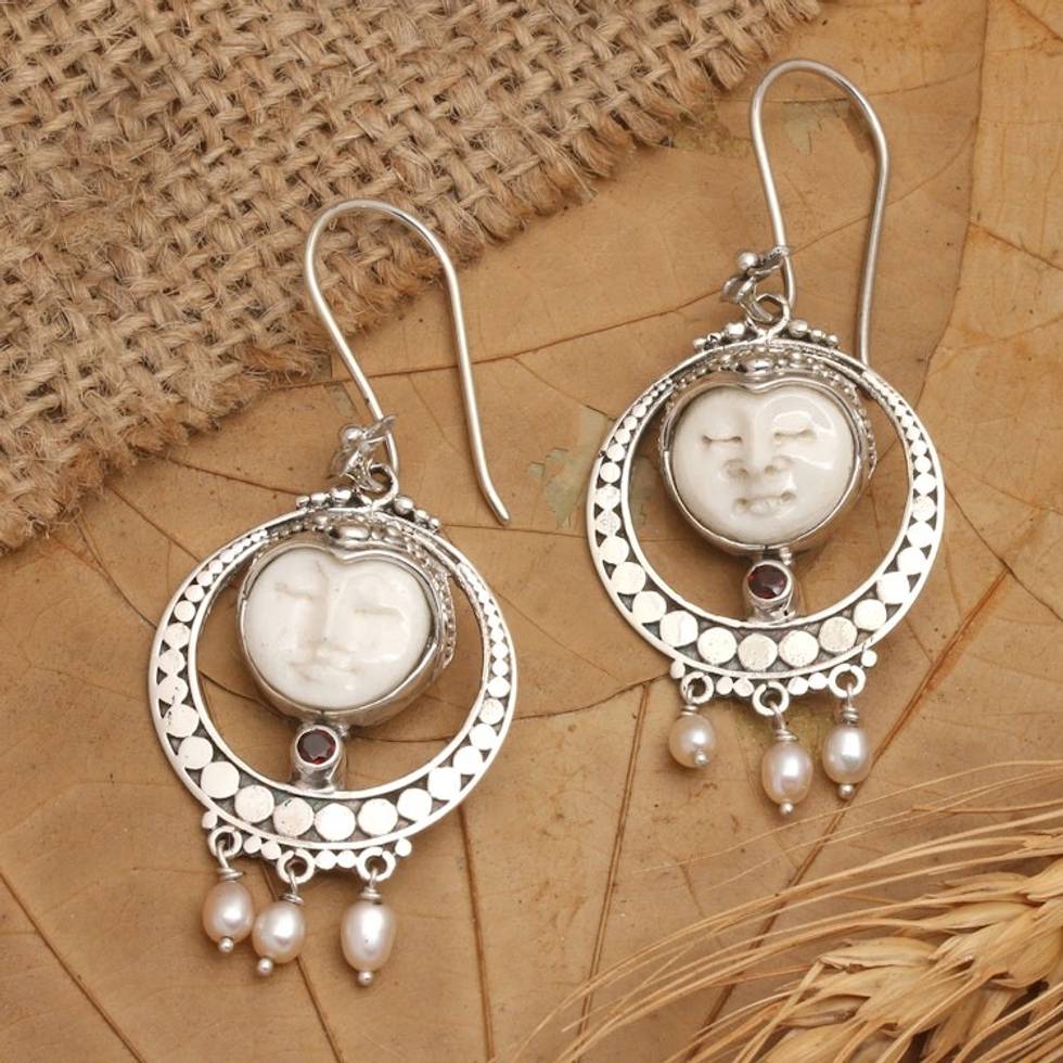 Classic Balinese Dangle Earrings with Pearls and Garnet Gems 'Island's Passionate Blessing' Item ID: 2671764805