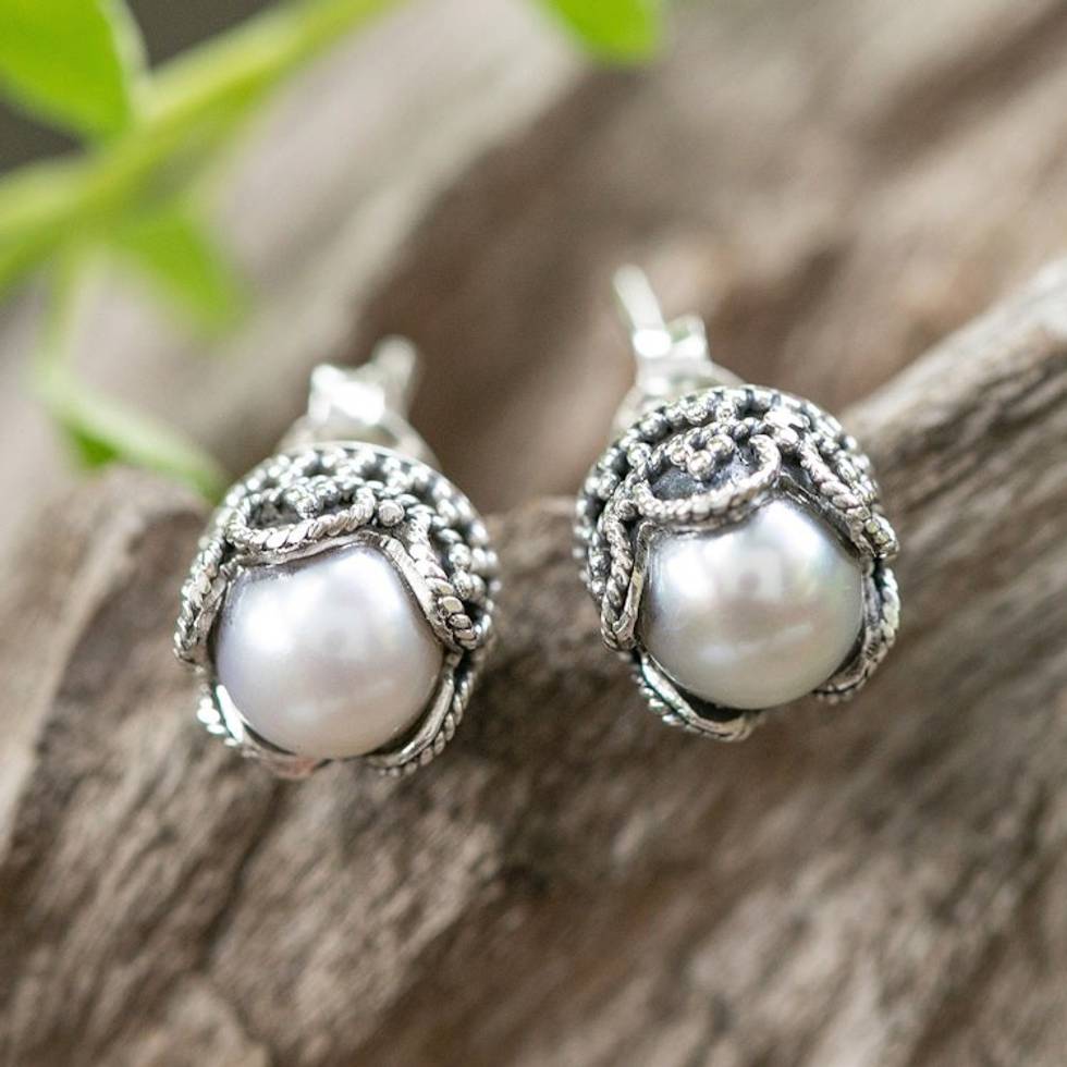Classic Balinese-Made Grey Cultured Pearl Stud Earrings 'Pearly Manifestation' Item ID: 2671765432