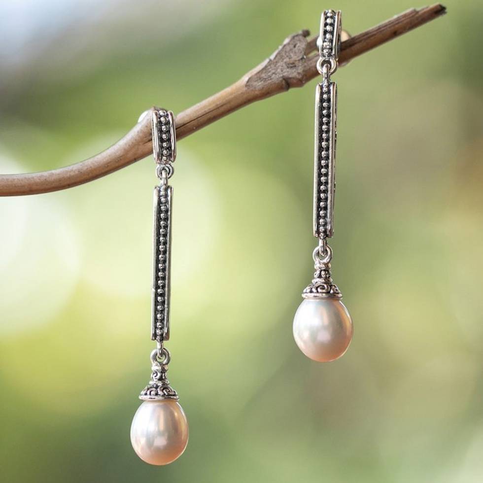 Classic Balinese-Made White Cultured Pearl Dangle Earrings 'Royal Dew' Item ID: 2671765702
