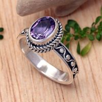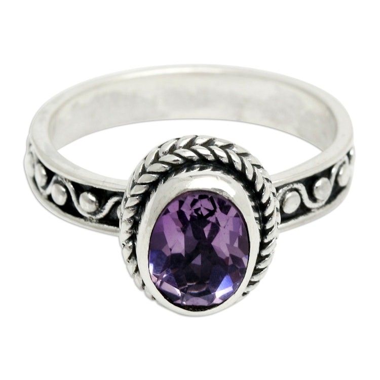 Classic Balinese One-Carat Amethyst Single Stone Ring 'Wise Waves' Item ID: 2671765231