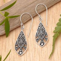 Classic Balinese Sterling Silver Dangle Earrings 'Royal Blooms' Item ID: 2671765416