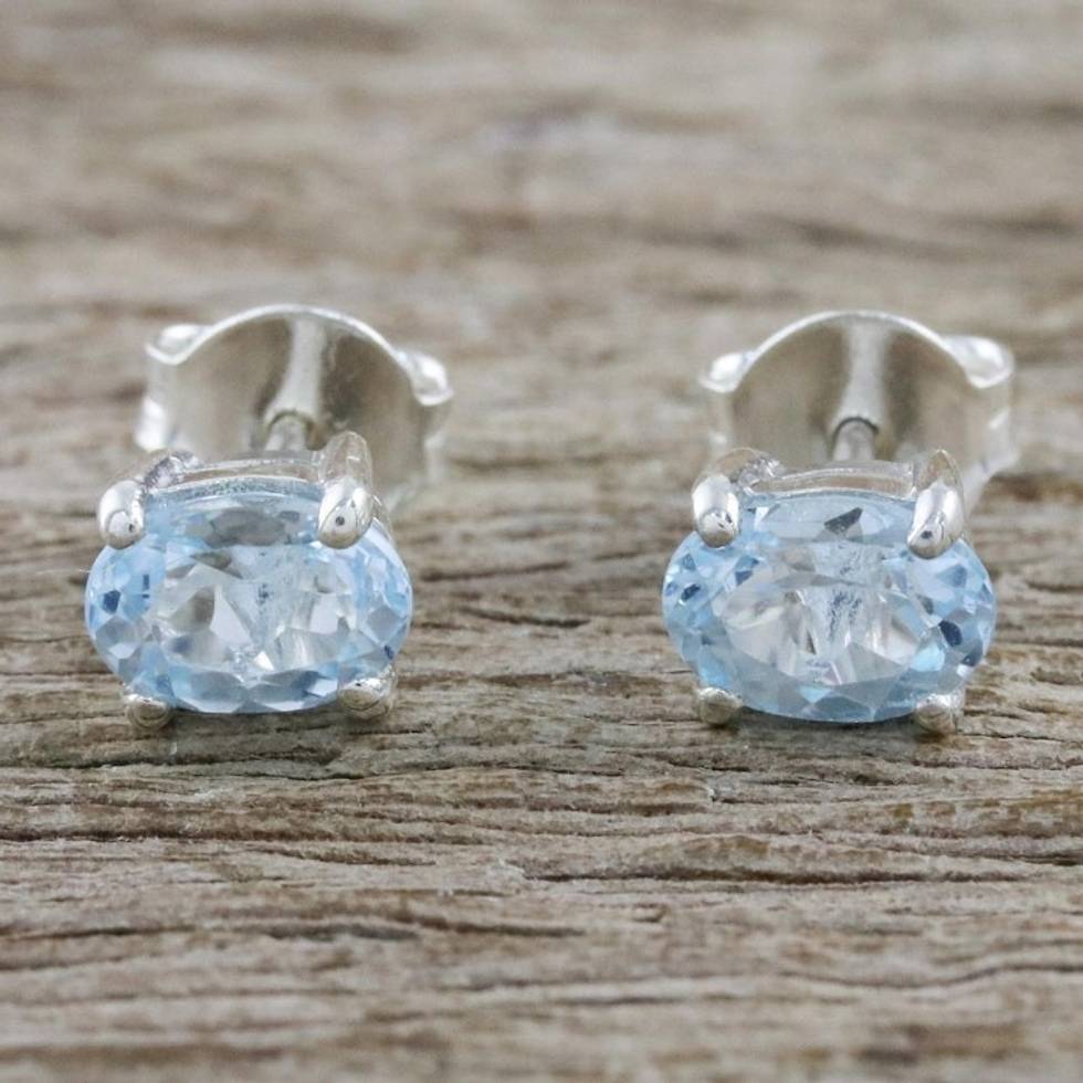 Classic Blue Topaz Stud Earrings from Thailand 'Everlasting Blue' Item ID: 2669925736